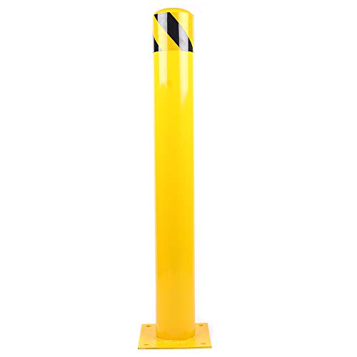 36” x 4.5 ” Safety Bollard Post Reflective Yellow Pipe Bollards Steel Parking Barrier Nocturnal Lifting Ground Barrier With 4 Free Anchor Bolts, Heavy Duty Powder Coated Safety Parking Barrier Post 11Ga(3MM) Base-8×8”