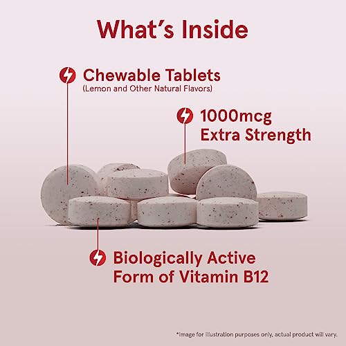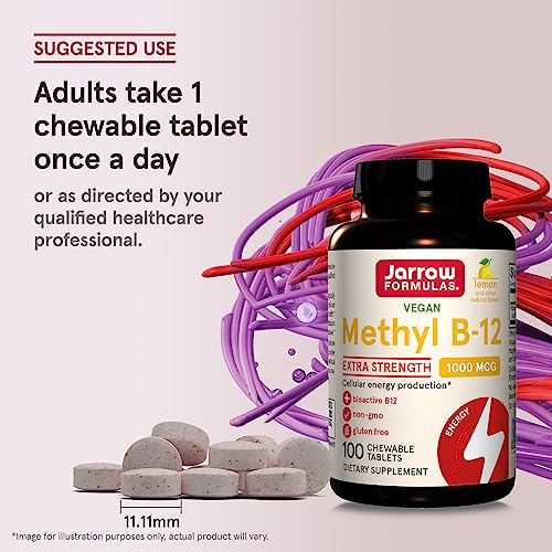 Jarrow Formulas Extra Strength Methyl B-12 1000 mcg – Dietary Supplement – 100 Lemon Flavored Chewable Tablets – Bioactive Vitamin B-12 – Supports Cellular Energy Production, Sleep & Brain Health