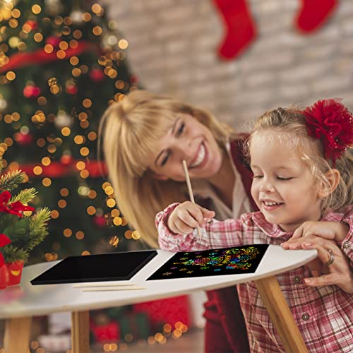 - 🌈🍒Great Value Scratch Paper Art Set: 🍓Scratch magic paper come with 50 sheets scratch sheets and 5 wooden stylus can meet your needs. you can use the stylus to scratch away to reveal the beautiful rainbow background. Let kids make outstanding handmade artworks, and keep boys and girls busy with fun DIY kids art craft project